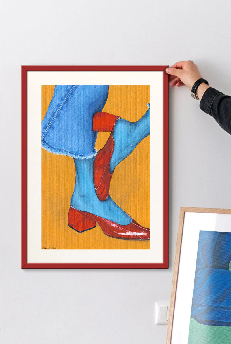 Introducing our stunning Red wooden frame, crafted in Italy! It features real glass for EU customers and premium acrylic glass for those outside the EU. With its contemporary and minimalist Scandinavian design, along with a sleek profile, this frame effortlessly complements any interior style. Perfect for showcasing your artwork beautifully!